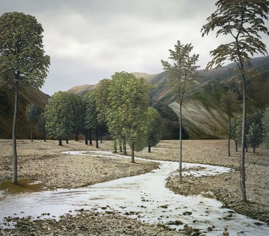 During the Industrial Revolution German romantic painters – Caspar David Friedrich in the lead – combined elements from different landscapes to their heart’s content in order to expose the sublime and approach ‘true feeling’. A mass of rocks from Rügen could therefore end up next to a tree from Dresden. In this series Tessa Verder puts trees from paintings into her photographed landscapes. She too no longer shuns combinations, now that man once again appears to be in search of the restoration of contact with nature.