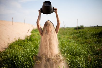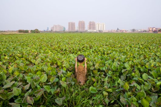 With his UNTITLED series Samnang Khvay fixes attention on a development that is having a deep influence on the urban planning of the Cambodian capital, Phnom Penh and the lives of thousands of poor families: the privatization and filling of public lakes for the benefit of developers. Khvay distances himself from the traditional practice of documentary photography by photographing himself while he pours a bucket of sand over himself, a metaphor that is open to various interpretations.