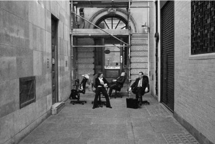 Between 2005 and 2007, on the eve of the crisis, Hin Chua worked for a large investment bank in the financial district of London. Chua took his camera to work with him every day. Before, during and after office hours – to the extent that the 24/7 international financial world is so bounded – Chua investigated “The City”. The result was a vast number of photos of a world that believed itself unassailable and walked into a wall, with eyes wide open.