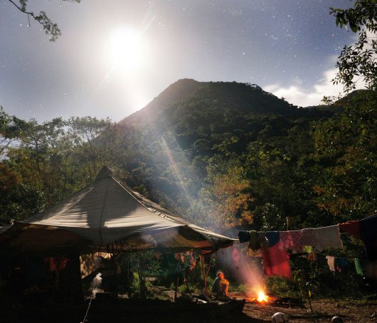 Members of what is called the Rainbow Family regularly come together from all over the world. The participants seek to live in harmony with nature. They reject violence, the consumer economy, and gather only in the most beautiful natural settings. Since her earliest youth the photographer Zia Zeff had gone to these Rainbow Gatherings, as they are called, with her parents. As a photographer who is also a professional dancer, painter and bodypaint and tattoo artist, she wanted to record her fellow Rainbow-family members in a more artistic manner than merely in a documentary portrait. She asked them to have their bodies painted as the animal or plant with which they felt the most affinity – their connection with the indigenous South American divinity Pachamama, literally ‘Mother Earth’. The result is a mix of painting, documentary photography and theater.