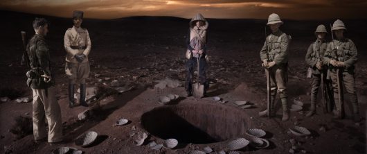 In her film IN THE FUTURE, THEY ATE FROM THE FINEST PORCELAIN, Larissa Sansour explores the role of myths as a replacement of history, facts and national identity. The film – a mix of archaeology, science fiction and politics – revolves around a resistance group who stocks up on large underground supplies of refined porcelain. The members’ aim is to influence history and support future claims on their disappearing country. Once unearthed, the porcelain dishes will prove the existence of a falsified people. This archaeological warfare is a desperate attempt of the resistance leader to safeguard the future of her people. It is a historical intervention, with which a nation is in effect created.