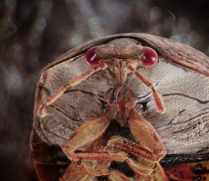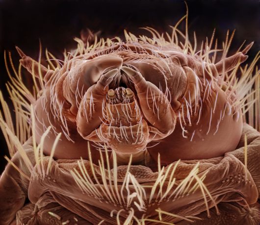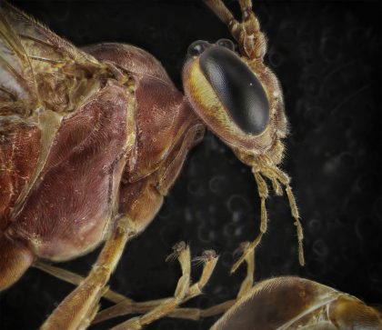 No matter how much we try to keep nature outdoors, insects will always find their way back indoors. In SUBURBAN SYMBIOSIS: INSECTUM DOMESTICUS, Daniel Kariko examines the expansion of the human habitat in the suburbs by means of enormous portraits of the housemates we often take no notice of. The presence of the insects is the natural by-product of our occupation of their natural habitat. Kariko composed his images from a number of recordings made by ascanning electron microscope and a stereoscopic microscope. With the right adjustment of lighting and by making use of small reflectors, Kariko achieves the portrait effect, inspired by seventeenth century Dutch master painters.