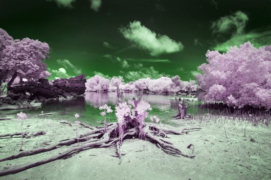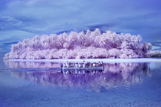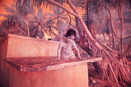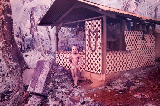 Pingelap is an atoll in the Pacific Ocean where an unusually large part of the population is completely colour blind. It is a popular destination for researchers. Neurologist and writer Oliver Sacks wrote a book with the same title as Sanne De Wilde’s series. On the island, De Wilde took black and white photographs as well as digital infrared photographs, which she used to challenge her own perception of colour. Back in Amsterdam, she asked people with colourblindness to colour in several of the black and white photographs. In other photographs, we see those portrayed with their eyes simultaneously open and shut, owing to slow shutter speeds, a reference to the quick blinking of their eyes under bright light. In this way, De Wilde transforms the medium of photography into a metaphor for the limits of our visual faculty.