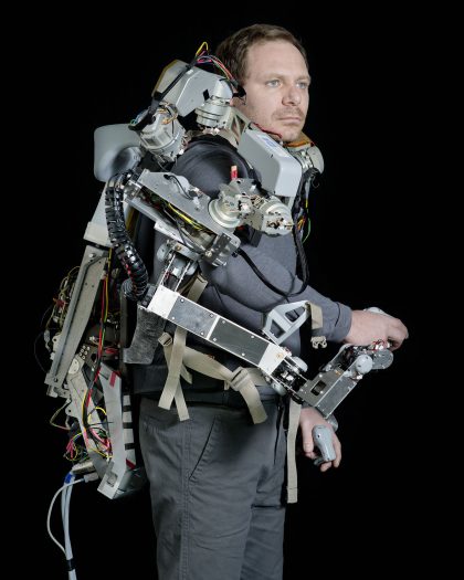 The dream of creating an artificial human is evident throughout the history of humanity, from the Golem, the Jewish legend of an animated anthropomorphic being and Mary Shelley’s novel Frankenstein from 1818 to the Maschinenmensch in the German film Metropolis from 1927. This fiction has now become a reality with the humanoid robots being built in laboratories. People also upgrade their bodies with technical implants such as microchips carrying identity details and medical files. Exoskeletons, prosthetics and virtual reality glasses are expanding our bodies’ capacities or repairing defects. In UNCANNY VALLEY, Jakob Weber portrays these people and beings, and their surroundings.