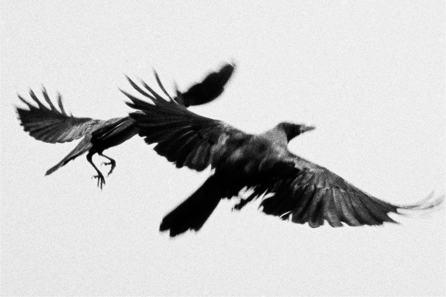 Bol became fascinated by the playful, intelligent and ever-alert ravens and crows. He has been photographing them for over twenty years. Their black, menacing appearance can evoke fear, even associations with death. Yet in some cultures they are symbols of good luck. Ravens and crows were already admired in antiquity and even worshipped. The story goes that the ruler of the gods Odin sent his two ravens Hugin (‘thought’) and Munin (‘memory’) down to earth to take a critical look at humans. The rhythm in the photographs of Hans Bol – often considerably enlarged, coarse-grained cut outs – depicts how these birds descend on earth and take off again, back to the gods. ‘God’s Allies’ was published as a photobook in 2018.