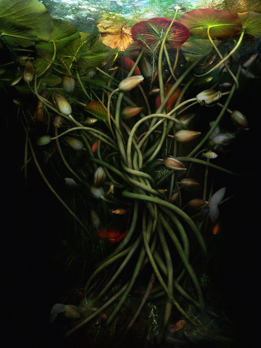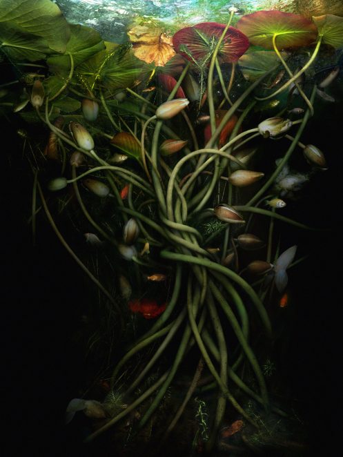 The world of underwater plants is dark and muddy, but in UNSTILL LIFE Catherine Nelson presents an underwater world that can even be called human: it is both familiar and unknown. Nelson created a new form of nature, which she carefully arranged and transformed into a super-form of itself. The stems of the plants are turned in such a way so as to show their best side. Time is compressed: all lilies are in bud, while they bloom and die at the same time. With her digital images, Nelson refers to the achievements of humanity, which is decoding nature’s secrets at a rapid pace and trying to improve all that exists.