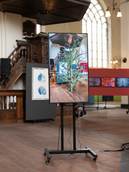 ‘Wat je zaait, zul je oogsten’ [‘You reap what you sow’] is a mixed-media installation portraying the fictional character of a tree that grows in the presence of observers and shrinks when left alone.