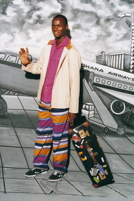 Philip Kwame Apagya (1958) is een Ghanese kunstenaar wiens kleurenfoto’s een eigentijdse draai geven aan de traditionele West-Afrikaanse portretkunst. Na een stage in het atelier van zijn vader, werkte Apagya jarenlang als rondreizend fotograaf in Ivoorkust. Na zijn afstuderen in fotojournalistiek aan het Ghana Institute of Journalism in Accra, begon hij zijn eigen studio (PK’s Normal Fotostudio) in Shama (Ghana), in 1982. In Apagya’s foto’s interageren onderwerpen met zijn felgekleurde 2D-achtergronden, interieurs en exterieurs die de attributen en uitrusting van een welvarende internationale cultuur catalogiseren.
