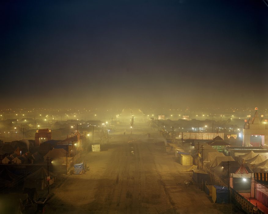 Eens in de twaalf jaar vindt in de Indiase stad Allahabad het religieuze festival ‘Kumbh Mela’ plaats. Dit festival duurt een maand en trekt miljoenen pelgrims uit heel India. Met een bad op het kruispunt van de rivieren Yamuna en Ganges hopen zij hun zonden van zich af te wassen. Om de pelgrims te huisvesten wordt aan de oevers een immens tentenkamp ingericht. Philipp Ebeling en Olivia Arthur legden dit tijdelijke dorp vlak voor het begin van het festival vast in foto’s die stilte en verwachting uitstralen.