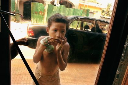 Veel dakloze kinderen in de Cambodjaanse stad Siem Reap, gelegen bij de beroemde tempels van Angkor Wat, snuiven lijm. Zo ontsnappen de CAMBODIAN GLUE KIDS (2005) even aan de pijn en de honger die onlosmakelijk zijn verbonden met het harde leven op straat. Geschat wordt dat veertig procent van de kinderen in Cambodja is verslaafd aan het snuiven van lijm. Vooral de prijs maakt het de populairste soort drugs. Een portie lijm is al te koop voor een halve dollar. Het benodigde geld verdienen de kinderen met bedelen bij toeristen. Hoewel het snuiven van lijm een van de grootste problemen van het hedendaagse Cambodja vormt, kent het land nog altijd geen enkele vorm van verslavingszorg.