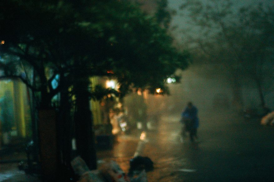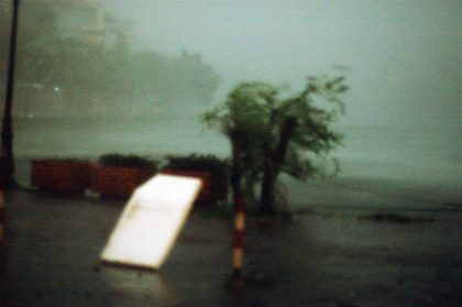 Het woord moesson komt van het Arabische mausim, wat staat voor de seizoensgebonden windrichtingen. De moesson bepaalt de agenda in het merendeel van Zuidoost-Azië, met name die van de agrarische en de toeristische sector. De plotselinge, zware regenval maakt de regio tot een van de vruchtbaarste ter wereld. Tegelijkertijd zorgt het gebrek aan voorzieningen voor wateroverlast en worden bewoners gehinderd in hun mobiliteit. Sherman Ong fotografeerde MONSOON (2005) vanuit een rijdende auto. Het raampje liet hij gesloten. Het resultaat is een poëtische impressie van het seizoen dat in Zuidoost-Azië zowel de psyche als het landschap ingrijpend verandert.