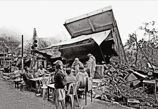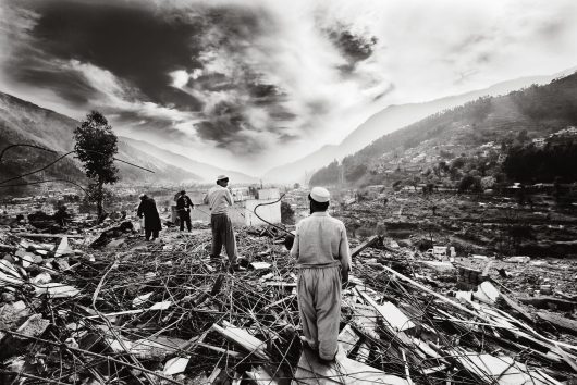 Op 8 oktober 2005 werd Kashmir getroffen door een zware aardbeving. Het epicentrum bevond zich in het Pakistaanse deel. Steden werden weggevaagd, bergwanden veranderden in modderstromen. Bijna honderdduizend mensen kwamen om. Vier miljoen mensen werden anderszins getroffen door de ramp. Shahidul Alam bezocht het Pakistaanse rampgebied twee maanden na de beving. Nog steeds ruimden mensen puin en zochten ze naar slachtoffers. Tegelijkertijd werden huizen herbouwd en openden de eerste geïmproviseerde winkels. ‘De natuur had zijn woede getoond’, aldus de fotograaf. ‘Nu vochten de mensen terug.’