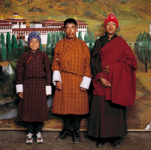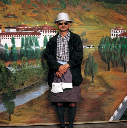 Tot op de dag van vandaag kleden de inwoners van Bhutan zich volgens strikte regels, die worden gepropageerd door de overheid. Ambtenaren werken verplicht in de traditionele kledij, een zogeheten gho voor de mannen en een kira voor de vrouwen. Burgers die anders gekleed over straat gaan, kregen tot voor kort een boete. Tegenwoordig is er steeds meer westerse kleding verkrijgbaar in Bhutan. Dat leidt tot een nieuw straatbeeld. Boris Missirkov fotografeerde een aantal toevallige klanten van een fotostudio in de Bhutanese hoofdstad Thimpu voor het aldaar aanwezige decor. BHUTANESE FASHION (2002) toont zo de laatste mode in Bhutan, die traditionele en westerse dresscodes vermengt.