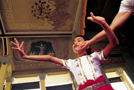 Christophe Loviny verwerkte de opmerkelijke geschiedenis van Cambodja in een zesluik. Hij opent met historische beelden van het tijdperk van de aspara’s. Deze ‘hemelse dansers’ namen deel aan alle ceremonies en werden gezien als boodschappers van de goden. Daarna volgen beelden van wat Leviny ‘de luie kolonisatie’, door de Fransen noemt, die een zegen bleek voor het behoud van de cultuur. De derde serie staat in het teken van Norodom Sihanouk, een koning. De vierde reeks richt zich op S21, het beruchte vernietigingskamp van de Rode Khmer, waar gevangenen voorafgaand aan hun executie werden gefotografeerd. De foto’s zijn grotendeels afkomstig uit het album van een Khmer-officier die werkte in S-21. Loviny combineerde al deze historische beelden met zijn foto’s van de voorzichtige terugkeer van de aspara’s, symbool voor de renaissance die Cambodja momenteel ondergaat. Het zesluik eindigt met foto’s die zijn gemaakt door de straatkinderen van Angkor, wiens ouders door landmijnen zijn verminkt.