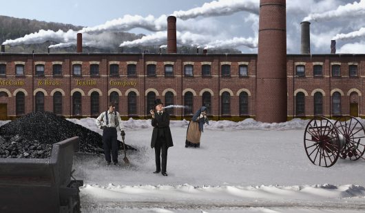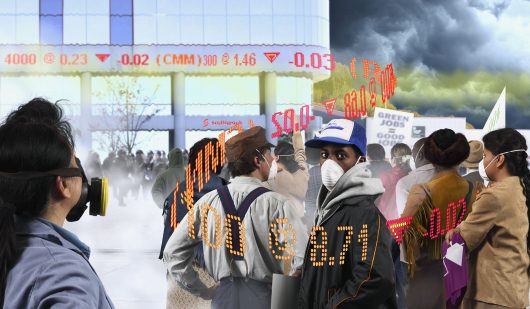 Beginnend met een pre-koloniaal bos laten de acht foto’s de economische geschiedenis en de daarmee samenhangende impact op het landschap en milieu zien. Via onder meer de bonthandel en het bijna uitsterven van de bever, en een chemische fabriek uit de jaren zestig en de moderne industriële milieuvervuiling, belandt de kijker bij een kantoortoren, de ‘financialisatie’ van de economie en de wereldwijde opwarming van de aarde. In elke foto zijn twee arbeiders afgebeeld: de ene verbeeldt de tol die arbeiders in de vorm van letsel, ziekte en werkloosheid moeten betalen, de andere verbeeldt vormen van verzet tegen de eveneens afgebeelde ondernemers.