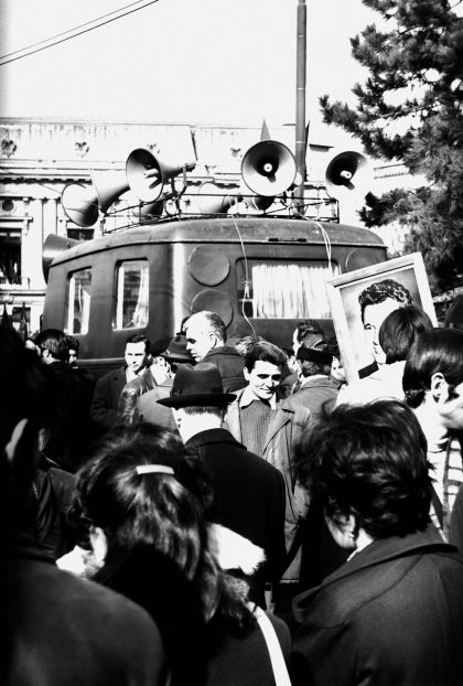 In communistisch Roemenië waren door de staat geregisseerde verkiezingsbijeenkomsten aan de orde van de dag. Burgers moesten onder toeziend oog van de gevreesde geheime dienst de straat op om adhesie te betuigen aan het regime. Ion Grigorescu fotografeerde clandestien een van deze bijeenkomsten, georganiseerd op 6 maart 1975. Het resultaat toont vooral het mechanisme achter de demonstraties. Het samenspel van de even verwarde als volgzame massa en de individuele leden van de geheime politie leidt tot een absurd schouwspel, waarin elke spontaniteit ontbreekt. De zinloze en mechanische acties hebben geen ander doel dan het (laten) spelen van rollen, opgelegd door een systeem van discrete maar nietsontziende onderdrukking.