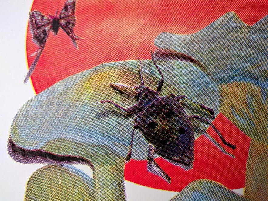 Voor haar collages gebruikt Kim eigen foto’s van landschappen, reizen en alles wat haar inspireert. Ze combineert deze met uitgeknipte fotografische onderdelen uit insectenboeken, boeken over flora en fauna, het heelal en tijdschriften. Hierna voegt ze de verschillende onderdelen samen tot een nieuwe compositie met een eigen verhaal. Dit doet ze zowel op de computer als met de hand, waarbij geknipt en geschoven wordt en soms ook andere materialen zoals ecoline, pastel en verf worden gebruikt. Naast muziek zijn haar inspiratiebronnen dieren en de natuur. Gefascineerd door de kleuren, vormen en patronen neemt ze de toeschouwer mee in de wonderlijke nieuwe droomwerelden die ontstaan. Na het ontwerpproces worden de werken met de hand in kleine gelimiteerde oplages gezeefdrukt, opgebouwd met verschillende kleurlagen. Het resultaat is een levendige veelheid van lagen en kleuren die de kijker doen verrassen. Geen enkele afdruk is exact hetzelfde, waardoor elk werk uniek is.