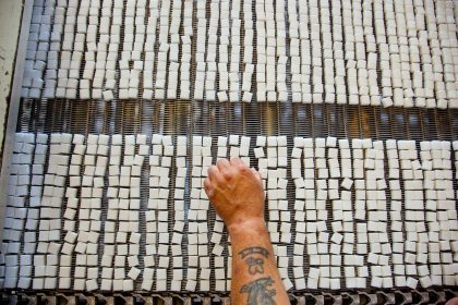 De Noord-Amerikaanse fotograaf Ed Kashi reisde naar Nederland om de zeer efficiënte fabrieksfaciliteiten vast te leggen waar suiker wordt gebruikt als ingrediënt om voedselproducten te zoeten en te conserveren. De steriele productiehallen onthullen een surreële kant van de moderne voedselindustrie die grotendeels onzichtbaar blijft, behalve voor degenen die er werken.