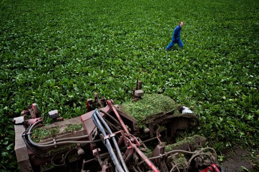 Francesco Zizola documenteerde de geïndustrialiseerde suikerbietenoogst in het noorden van Nederland. Nog maar een paar decennia geleden was de Nederlandse agrarische sector kleinschalig, arbeidsintensief en het domein van familiebedrijven. Het verschil met een modern boerenbedrijf dat suikerbieten verbouwd kan nauwelijks groter zijn: tegenwoordig is de bietenoogst kapitaalintensief, efficiënt en industrieel. Maar het voortdurende gevecht om meer efficiëntie biedt in een wereldwijde economie geen garanties op verdiensten. Om de internationale ratrace te overleven, moeten boeren door de politiek worden beschermd of produceren tegen de laagst mogelijke prijzen.