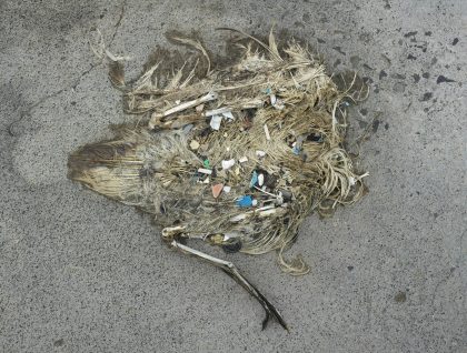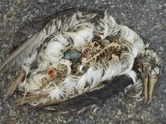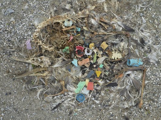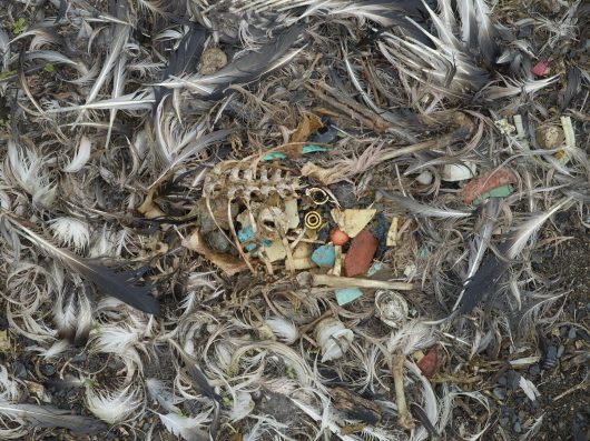 Op de Midway Atol, een groep eilanden in de noordelijke Stille Oceaan, op ruim 3.000 km van het dichtstbijzijnde continent, verschijnt het afval van onze massaconsumptie op een niet erg voor de hand liggende plaats: in de maag van duizenden dode baby-albatrossen.