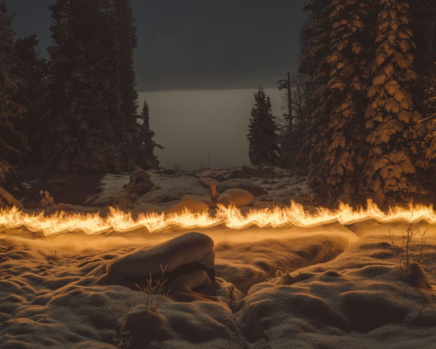 Finnskogen, letterlijk ‘het bos van de Finnen’, ligt op de grens tussen Noorwegen en Zweden. In dit grote, aaneengesloten bosgebied vestigden zich in de vroege zeventiende eeuw Finse immigranten. Deze Bosfinnen brandden stukken bos plat, verbouwden er enkele jaren voedsel en migreerden vervolgens naar een ander gebied. Dit was een vroege methode van grondontginning ten behoeve van landbouw, een snelle manier om vruchtbare grond te maken waarbij de as als bemesting fungeerde. De omgang van de Bosfinnen met de natuur was geworteld in een oosters-sjamanistische traditie, waarin rituelen, toverspreuken en magische symbolen praktische, alledaagse gereedschappen waren. In Noorwegen vormen ze nu een erkende nationale minderheid, waarvan men zichzelf tot lid kan verklaren, los van feitelijke afstamming. In SLASH & BURN verwijst Terje Abusdal naar hun levenswijze, terwijl hij onderzoekt wat het betekent om een Bosfin te zijn in een tijd waarin hun cultuur en taal al lang zijn verdwenen.