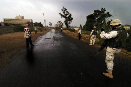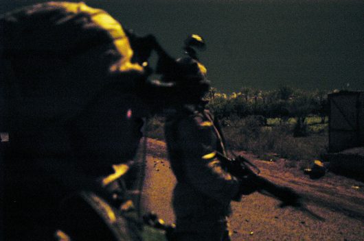 De soenni-driehoek wordt bevolkt door aanhangers van Saddam Hoessein, die als soennitische moslim zijn geloofsgenoten materieel en politiek bevoordeelde. Vanwege de haat tegen de Amerikanen en de angst voor een sjiitische overheersing, is het gebied het gevaarlijkste van Irak. De Nederlandse fotograaf Jeroen Kramer ging gedurende 48 uur op patrouille met de 124e brigade uit Miami, verantwoordelijk voor de veiligheid in de driehoek. Om tactische redenen mocht hij zijn flits niet gebruiken. De brigade ondergaat iedere dag vrijwel dezelfde routine. Bommen langs de wegen worden onschadelijk gemaakt, sluipschutters proberen vanaf het dak rebellen af te schrikken, en de raketten die op de HumVee’s worden afgevuurd, worden beantwoord met een spervuur. Hoewel de beschietingen soms een half uur aanhouden blijft vaak onduidelijk of er daadwerkelijk iemand is geraakt.