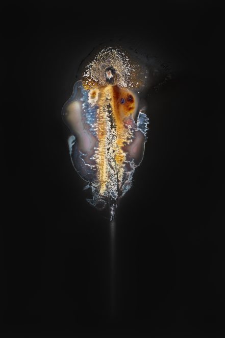 Haar werk vertrekt vanuit steenkool: ooit levend materiaal, nu bron van energie én symbool van ecologische ontwrichting. Tijdens een residency in de voormalige mijn Zeche Zollverein onderzocht Rooks steenkool via medische beeldvorming, zoals MRI- en CT-scans, en chemische experimenten. Door de structuur van steenkool in beeld te brengen met dezelfde technologie die ooit dankzij dat materiaal mogelijk werd, ontstaat een poëtische paradox. In combinatie met fotogrammetrie, analoge en digitale fotografie en druktechnieken met geologische pigmenten, legt ze verbanden tussen industrie, ecologie en zorg. De Latijnse titel Ynfra betekent ‘eronder’ en verwijst naar de in 1973 ontdekte en verborgen Zuidwalvulkaan in de Waddenzee tussen Harlingen en Vlieland. Ynfra maakt voelbaar hoe technologische systemen voortkomen uit natuurlijke bronnen, en hoe deze bronnen zelf vergeten lichamen uit het verleden dragen.