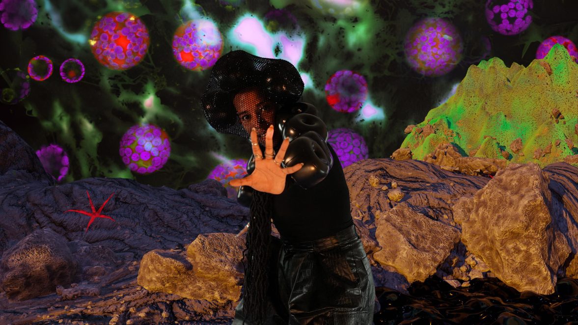 De installatie verkent revolutionaire netwerken die onzichtbaar en versleuteld onder de oppervlakte opereren, vergelijkbaar met de manier waarop schimmeldraden (mycelium) onder de grond communiceren. Ntjam verbindt deze biologische netwerken met verzetsverhalen uit de Afrikaanse diaspora en mythische figuren die symbool staan voor strijd en genezing. Zo brengt ze een eerbetoon aan activisten als Ruben Um Nyobè en Henrietta Lacks, én aan watergoden zoals Mami Wata. In deze kleurrijke mix van video, geluid, sculptuur en tekst ontstaat een speculatief landschap waarin verzet en spiritualiteit met elkaar verweven zijn. De installatie sluit nauw aan bij het denken over technologie als iets dat niet losstaat van natuur, maar er juist mee verstrengeld is—zoals ook binnen Machine Entanglements zichtbaar wordt. De verbinding tussen planten, politiek en poëzie biedt een nieuw scenario voor verzet, waarin ook het niet-menselijke als bondgenoot optreedt.