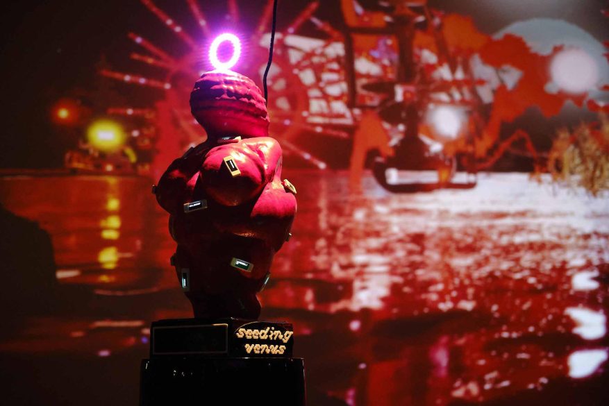 Een AI-taalgids leidt bezoekers door een veranderlijk 3D-landschap, waarin de verwoestende impact van datacenters, stroomverbruik en grondstofwinning tastbaar wordt gemaakt. De installatie is opgebouwd rond een centraal gamestation en fysieke cybersculpturen die reageren op licht en interactie. Door een eenvoudige zoekopdracht te typen, verandert niet alleen het digitale landschap, maar ook de fysieke omgeving, waardoor de onderlinge verbondenheid van menselijk handelen en technologische systemen voelbaar wordt. Model Collapse toont de nadruk op de extractie van natuurlijke hulpbronnen en de verborgen ecologische kosten van technologie. Door een speels en disruptief gebruik aan te moedigen, nodigt het werk uit om kritischer te kijken naar de invloed van AI op onze samenleving en natuur.