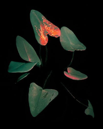 Bij stress zenden planten fluorescentie uit die onzichtbaar is voor het menselijk oog. In haar ‘botanische martelkamer’ stelde Lisa van Casand tientallen planten bloot aan giftige stoffen of andere stressveroorzakers zoals chloor, kokend water, zoutzuur, bleekmiddel, azijn en vuur. Op de beelden die ze maakte met speciaal ontwikkelde camera’s is te zien hoe de planten in de eerste dertig seconden reageren op de stress, waarna ze – al dan niet – herstellen, afhankelijk van de schade. Door inzicht te geven in hoe wij onze omgeving kunnen beschadigen op vaak onzichtbare wijze, plaatsen de beelden vraagtekens bij de manier waarop we emotioneel omgaan met onze groene medebewoners.
