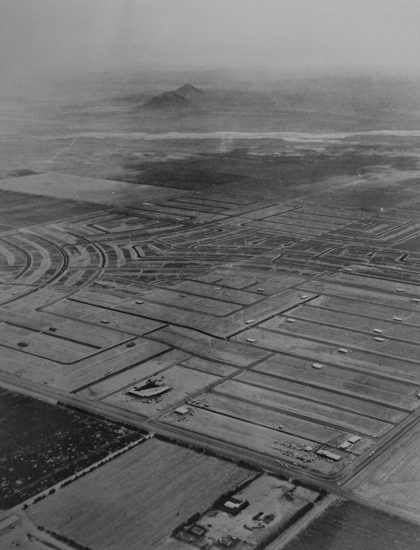 In de jaren vijftig ontwikkelde de Tjecho-Slowaakse socioloog Nathan K. Mendelsohn plannen voor California City, een utopische stad in de woestijn die de bevolkingsgroei van Los Angeles en San Francisco kon indammen. Op 330 vierkante kilometer land werd daarom een grid gerealiseerd met 52.000 kavels, snelwegen, straten en nutsvoorzieningen. Maar ook: een park, het grootste in plastic verpakte meer ter wereld, golfbanen en modelwoningen. Hoewel alle kavels aanvankelijk verkocht werden, telt California City nog altijd maar 14.000 inwoners. Elian Somers’ project combineert fotografie met reproducties van oude foto’s en een verkavelingsplan.