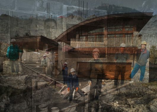 Sinds de jaren tachtig is er een massale trek van het Chinese platteland naar de uitdijende steden gaande. Veel plattelanders hebben emplooi gevonden in het leger aan bouwvakkers dat nodig is om de transformatie van China vorm te geven. Jiang Jian kreeg in 2007 van een makelaar opdracht de bouw van 81 villa’s aan de rand van Shanghai vast te leggen. Deze prijzige optrekjes werden gebouwd door boerenarbeiders. Door de villa af te zetten tegen de plattelandsdorpen van de arbeiders laat de fotograaf in compacte vorm de waanzinnige en soms desoriënterende, verandering van China zien.