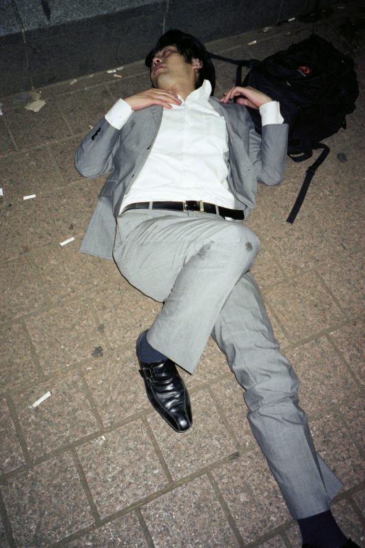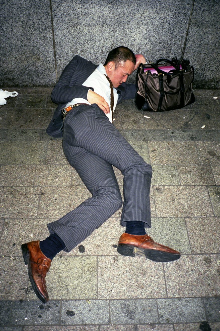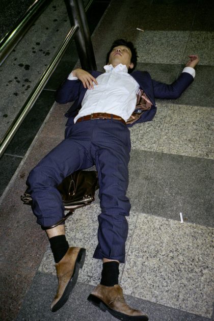 Nergens ter wereld is de werkdruk zo hoog als in Tokyo. De salarymen, loonslaven die ’s ochtends vroeg in drommen naar kantoor trekken, maken dagen van twaalf uur en worden daarna geacht de baas te vergezellen in een drink- en eetfestijn. Sommige kantoorarbeiders raken zo uitgeput dat ze midden op straat in slaap vallen. Pawel Jaszczuk legde ze vast in beelden die op het eerste gezicht amusant zijn, maar bij nadere beschouwing tragisch.