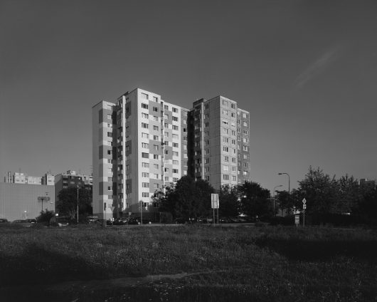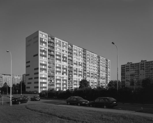 Gevraagd naar een typering van de woonflats in het voormalige Oostblok, zullen de meeste mensen de woorden ‘grijs’ en ‘grauw’ in de mond nemen. Om daar mee af te rekenen zijn veel prefab-gebouwen voorzien van nieuwe lagen verf, in kleuren die niet alleen een utopische belofte van vrolijkheid en diversiteit suggereren, maar ook het verleden uitpoetsen. Maros Krivy fotografeerde in verschillende voormalige communistische landen die gebouwen, maar wel in zwart-wit – hij ontneemt ons het eenvoudige plezier van lachen om eigenaardige kleurcombinaties, maar geeft in zijn bijschriften de kleuren op die we hadden kunnen zien. Is het grootstedelijk Utopia werkelijk afhankelijk van zoiets oppervlakkigs als een likje verf? Blijft de stad onder de lagen verf niet net zo grauw als altijd?