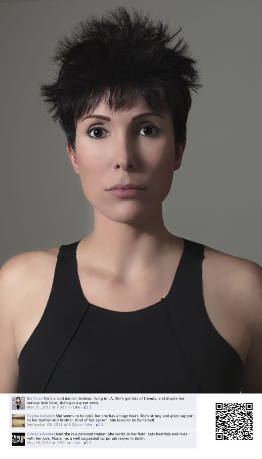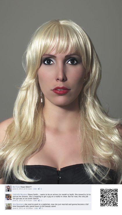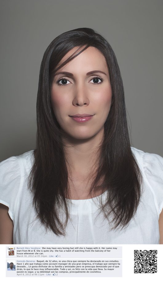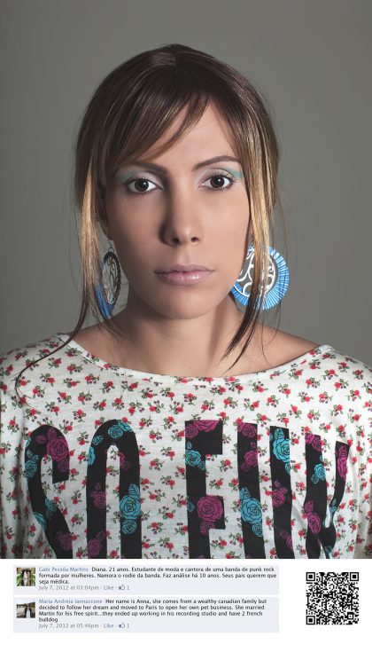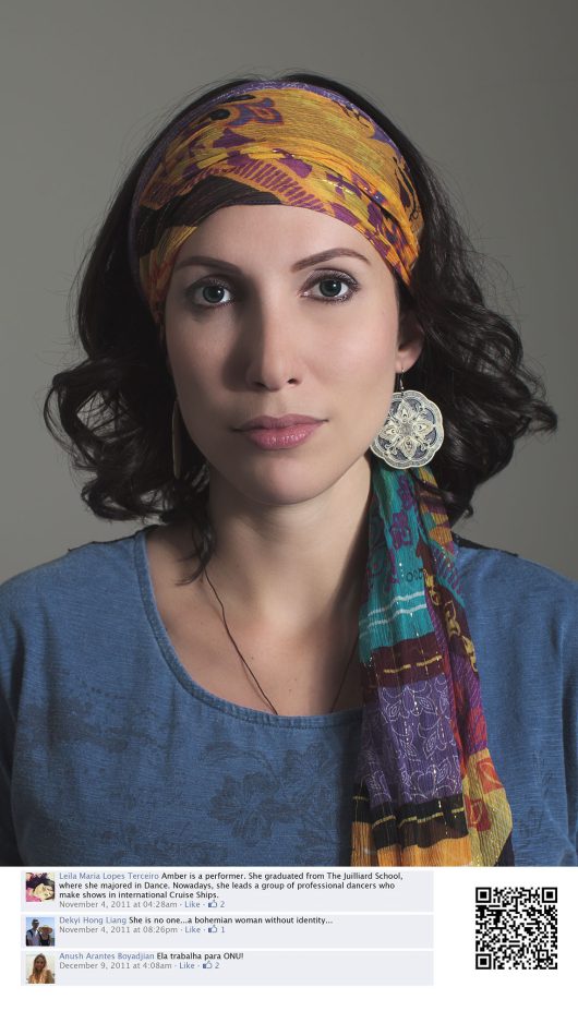 Voor haar serie BORN NOWHERE maakte Laís Pontes een serie zelfportretten, waarmee ze met behulp van digitale technieken een reeks nieuwe persoonlijkheden creëerde. Vervolgens zette ze de gemanipuleerde portretten op Facebook en vroeg haar medegebruikers om hun gedachten over, en interpretaties van de personen die ze had gecreëerd. Op basis van de reacties kregen haar alter ego’s een biografie en een karakter. De beschrijvingen die Pontes ontving, worden ingegeven door wat in de psychoanalyse projectie wordt genoemd. Volgens dit fenomeen beschrijft de kijker zijn eigen achtergrond, realiteit en fantasieën toe aan anderen. Wat iemand ziet, is wat men wil zien.