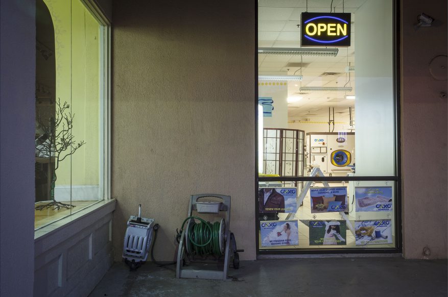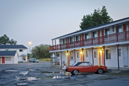 Met hun samenwerkingsprojecten onderzoeken Nate Larson en Marni Shindelman de data die we op online communicatienetwerken genereren. Voor GEOLOCATION gebruikten Larson en Shindelman publiek toegankelijke gps-informatie in Twitter-berichten om de fysieke locatie van de tweet op te sporen. Elke foto werd gemaakt op de exacte plek waar het bericht de wereld werd ingestuurd, onder vermelding van de tekst van het bericht. De foto’s verankeren en herdenken de vluchtige online data in de echte wereld. Tegelijkertijd houden ze de verwachte privacy van deze online netwerken tegen het licht.