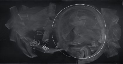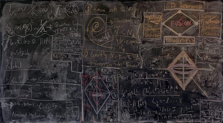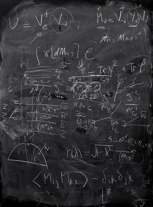 Voor MOMENTUM reisde Alejandro Guijarro langs de kwantummechanica-afdelingen van verschillende universiteiten, waaronder Cambridge, Stanford, Berkeley en Oxford. Daar fotografeerde hij na college’s op groot formaat de krijtborden, die daarna op waar formaat worden tentoongesteld. Buiten de instituties waar ze zijn ontstaan, verandert de betekenis van de formules. Wat begon als een beschrijving van het denkproces van een fysicus, krijgt door de lijnen en vormen van de vergelijkingen en formules een eigen esthetiek; de vegen van de bordwisser doen denken aan een uitgestrekt landschap. Zo evolueren de borden met exacte formules tot canvassen die vele betekenissen kunnen hebben.