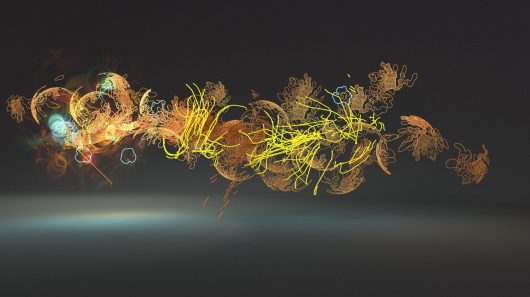 Kunstenaar Andy Thomas maakt, wat hij noemt, audio life forms. Deze driedimensionale video-animaties reageren op geluiden, die Thomas in zijn verbeelding ziet als bewegende vormen en kleuren, vergelijkbaar met de ervaring van een synestheet wiens ene zintuig het andere beïnvloedt. VISUAL SOUNDS OF THE AMAZON toont de vogelgeluiden die Thomas opzocht in het hart van het Amazoneregenwoud. Het worden geëvolueerde, abstracte vormen in felle kleuren, zwevend, pulserend, flitsend, draaiend, gelaagde composities van flora en fauna. Zich realiserend dat veel mensen compassiemoeheid hebben, hoopt hij met zijn werk bij te dragen aan een nieuwe betrokkenheid bij het lot van het immens diverse regenwoud. Hij brengt zo twee velden samen die vaak als tegenstrijdig worden ervaren: natuur en technologie. De botsing tussen beide vormt een statement over de impact van technologie en de maatschappelijke vooruitgang op de aarde en zijn natuurlijke systemen.