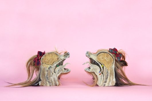 Voor RELIQUIAE fotografeerde Karin Borghouts dierlijke modellen, replica’s, afgietsels en preparaten uit verschillende universitaire collecties. Borghouts werd getroffen door de vormelijke schoonheid van deze bizarre restanten van gestorven dieren, die tot studieobjecten zijn getransformeerd. Om ze uit hun vaste context te halen en hun vervreemdende schoonheid tot zijn recht te laten komen, fotografeerde Borghouts de objecten tegen een roze, mintgroene en turquoise achtergrond. Zo bewaart Borghouts de overblijfselen van een leven en bezielt ze door ze de speciale status van kunstwerk toe te kennen.