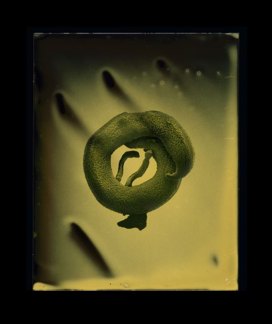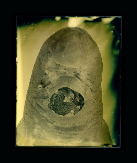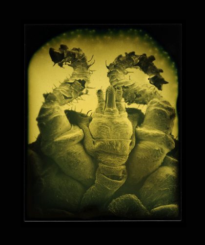 Marcus DeSieno is geïnteresseerd in de manier waarop de vooruitgang van fototechnieken onze relatie met de natuurlijke wereld verandert. In PARASITES verkent hij de geschiedenis van wetenschappelijk onderzoek naar parasitaire organismen, die middels een rasterelektronenmicroscoop zijn gefotografeerd en vastgelegd op ferrotypieën. Gedreven door wetenschappelijke nieuwsgierigheid heeft de fotografie sinds het midden van de negentiende eeuw een intrigerende relatie opgebouwd met het onzichtbare – een relatie die ons in staat stelt een wereld te ervaren die we zonder hulpmiddelen niet kunnen zien. Tegelijkertijd onderzoekt DeSieno zijn persoonlijke angst voor deze minuscule beestjes, die hier levensgroot worden afgebeeld.