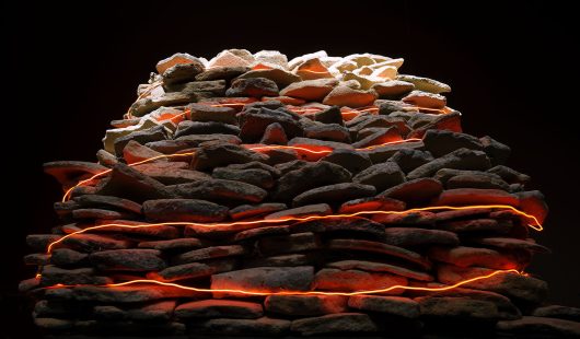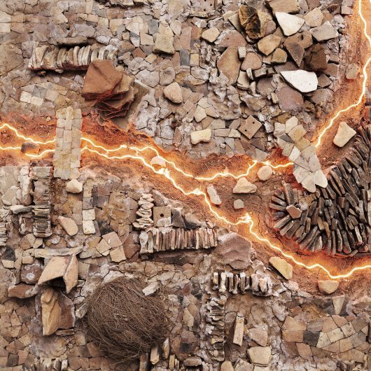 TERRAOPTICS is een vervolg op een installatie van kunstenaar Vivan Sundaram met honderdduizend potscherven uit de opgravingen bij Pattanam, van de verdwenen antieke havenstad Muziris, die tweeduizend jaar geleden aan de zuidwestkust van India een belangrijke rol in de wereldhandel speelde. Voor TERRAOPTICS rangschikte hij dezelfde scherven in de donkere kamer tot kleine decors met lichtgevende fiberoptica, die elk een eigen universum vormen. Het roept het beeld op van een prehistorisch landschap, doorsneden door brandende rivieren. Met gebruik van archeologische overblijfselen vestigt Sundaram de aandacht op de aarde, die we als vanzelfsprekend beschouwen. Door het land letterlijk en figuurlijk te verlichten, creƫert TERRAOPTICS een terrestrisch-optisch bewustzijn.