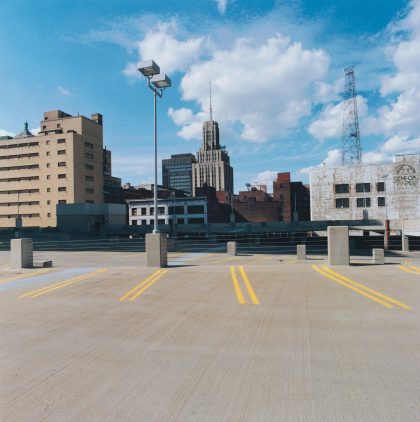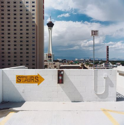 De auto is niet meer weg te denken uit de Amerikaanse ‘way of life’. Op zijn reizen door Noord-Amerika zag Derek Shapton hoezeer de inrichting van het landschap inmiddels is afgestemd op de auto. Sindsdien gaat hij met zijn werk voornamelijk in op wat hij noemt de ‘dehumaniserende aspecten van de auto’. Maar zijn foto’s van parkeergarages tonen ook de eigenzinnige schoonheid van de voor auto’s geconstrueerde ruimte. In Las Vegas, een kunstmatige stad in de woestijn die alleen dankzij de auto kan bestaan, sluiten de bovenste etages van de garages perfect aan op de omgeving: zeer hete, open ruimtes waar geen mens te zien is. Het zijn asfaltwoestijnen en tegelijkertijd oases in een bruisende gokstad.