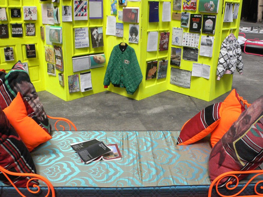 ‘Tussen Wal En Schip – Voor Jaffa’ van Susanne Khalil Yusef(Palestina, 1984) is een persoonlijk verhaal, beïnvloed door de geopolitieke ontwikkelingen over de Palestijnse diaspora. Haar Palestijnse achtergrond is overal aanwezig– persoonlijke artefacten zoals foto’s, knipsels en brieven worden ingezet om de ontheemding aan te geven en hoe die omstandigheden haar leven bepalen. Zo wordt in de installatie ‘Letters From My Friends’ een uitgebreide collage van persoonlijke correspondentie gedrapeerd over meerdere knalroze bedden. Yusef studeerde in 2018 af aan AKV St. Joost Master, Breda.