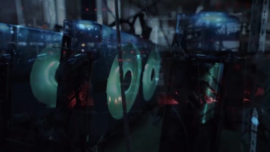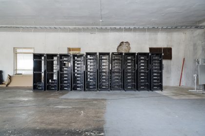 ‘The Flood’ is born from research into crypto-currency and its mining and energy needs, and makes use of abstractions based on its forms, concepts and ideas. The work alternates between documentary style images and simulated 3D objects in the environment. Although Het werk bestaat uit een 3-kanaals video-installatie, gecombineerd met digitale prints. Eén video geeft een continu beeld van een van de grootste Estlandse cryptomijnen, gelegen in een voormalige gevangenis, en laat zo het karakter van dit soort ruimtes zien. Het beeld gaat vergezeld van een audiotrack, die uiteindelijk overschakelt op experimentele elektronische muziek, resonerend met de sciencefictionachtige beelden. De tweede video combineert beelden van crypto-valuta en olieschalie-mijnen in Estland met 3D-animaties. Olieschalie is de belangrijkste energiebron in Estland en wordt gebruikt om cryptovaluta te creëren. Imperfecte 3D-modellen van de cryptomijnen en andere plaatsen en objecten verwijzen naar het ‘originele’ gebruik van grafische kaarten. De derde video bevat interviews met mensen die voor en na de hausse kleinschalige mijnen in Estland exploiteerden. De video’s worden aangevuld met fotografisch beeld van verschillende mijnen – van olieschalie- tot doe-het-zelf cryptogeld-mijnbouwinstallaties.