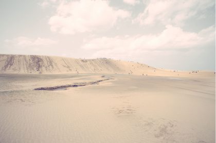 In de jaren zestig gebruikte Singapore de grond van zijn bescheiden heuvels om land aan te winnen. Tegenwoordig is de ministaat vrijwel plat, en gedwongen zand aan te kopen van Indonesiƫ en Maleisiƫ om te kunnen blijven groeien. Wanneer een project voor landaanwinning begint, vormen zich grote woestijnachtige landschappen aan de randen van Singapore. Ze nemen de plaats in van nu verdwenen stranden. Bewoners trekken in de weekenden naar de nieuwe kustlijnen, op zoek naar de stranden die ze ooit gekend hebben. AS WE WALKED ON WATER is onderdeel van een het Land Archive, een opslagplaats voor gevonden en historische beelden.